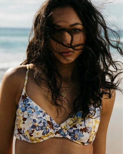 Designed with comfort and style in mind, the Hula Moon Nova Bra Bikini Top is built with added substance to support DD cup sizing. The women’s swim top features a standout, textured floral print made from our eco Love Myself fabric, with adjustable shoulder straps and a hook back closure. Super versatile, the top can double as a bra when the party moves from the beach to the streets.