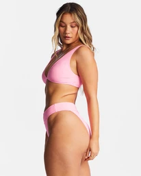 Keep the vibes high in and out of the water with the Rainbow Tide Square Bralette bikini top. Saturated in sunbaked psychedelia, this women’s bikini top shines in a bold rainbow tie-dye print on recycled rib fabric. The skimpy coverage is ideal for soaking in endless rays, with the removable cup inserts and adjustable straps let you customize your shape and support.
